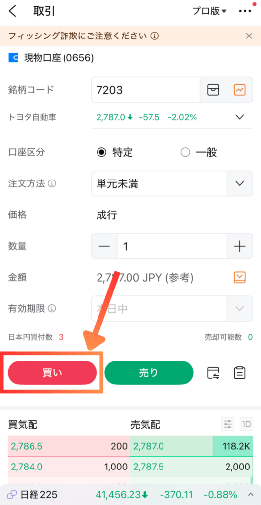 ⑪買いをタップ