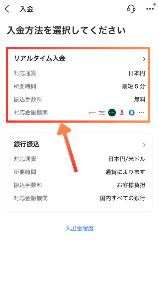 リアルタイム入金がおすすめ!