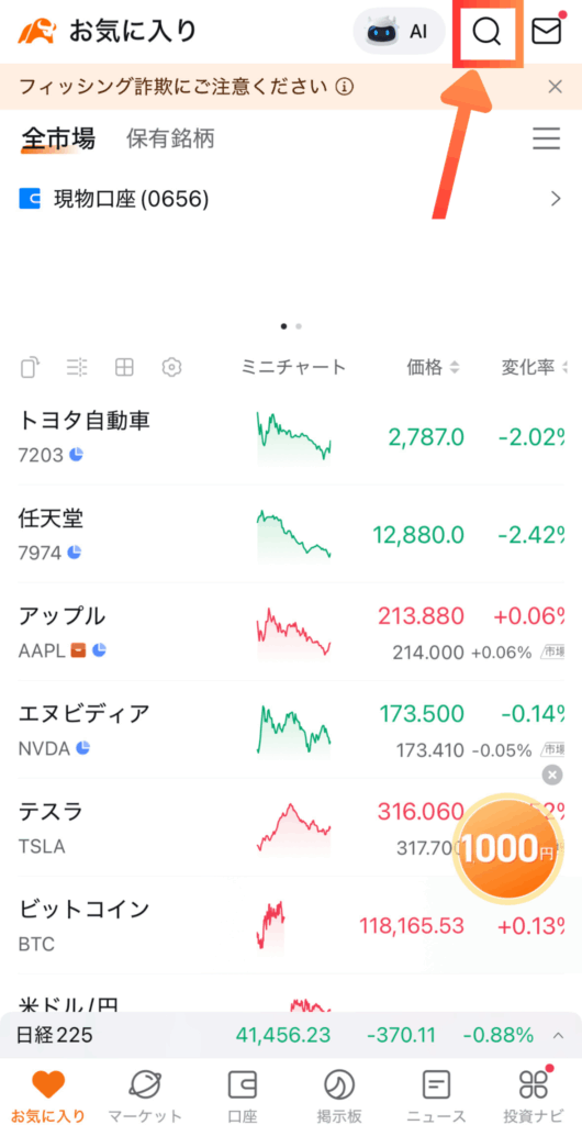 ⑤虫眼鏡アイコンをタップ