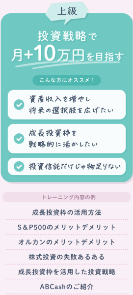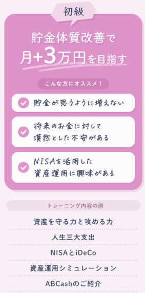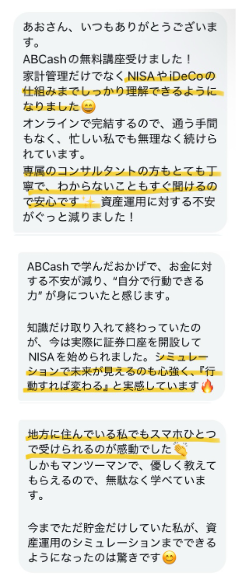 ABCashなら、自分に合った支出の減らし方やNISAの増やし方をマンツーマンで優しくで教えてもらえるよ🔰